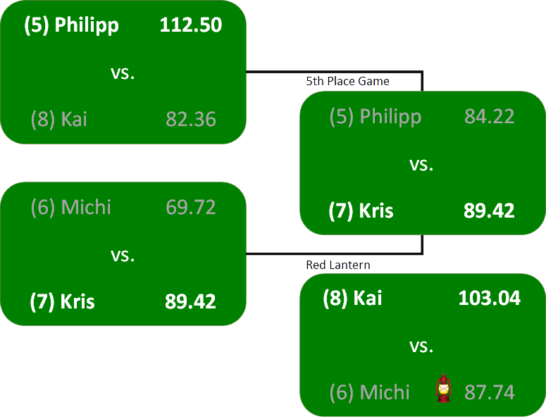 2014 | 16 | Kai | Kai | Kai,Michi | 103.04 | vs. | 87.74 | Michi ![]() | Michi | Michi,Kai | Red Lantern |