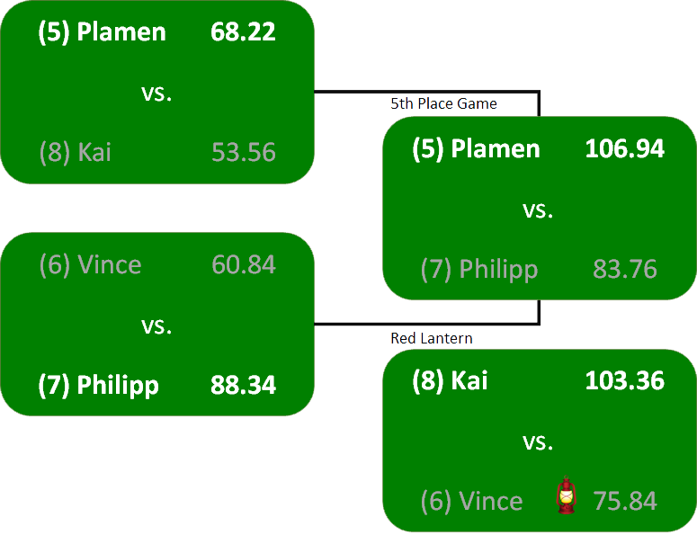 2018 | 16 | Plamen | Plamen | Plamen,Philipp | 106.94 | vs. | 83.76 | Philipp | Philipp | Philipp,Plamen | 5th Place Game |
